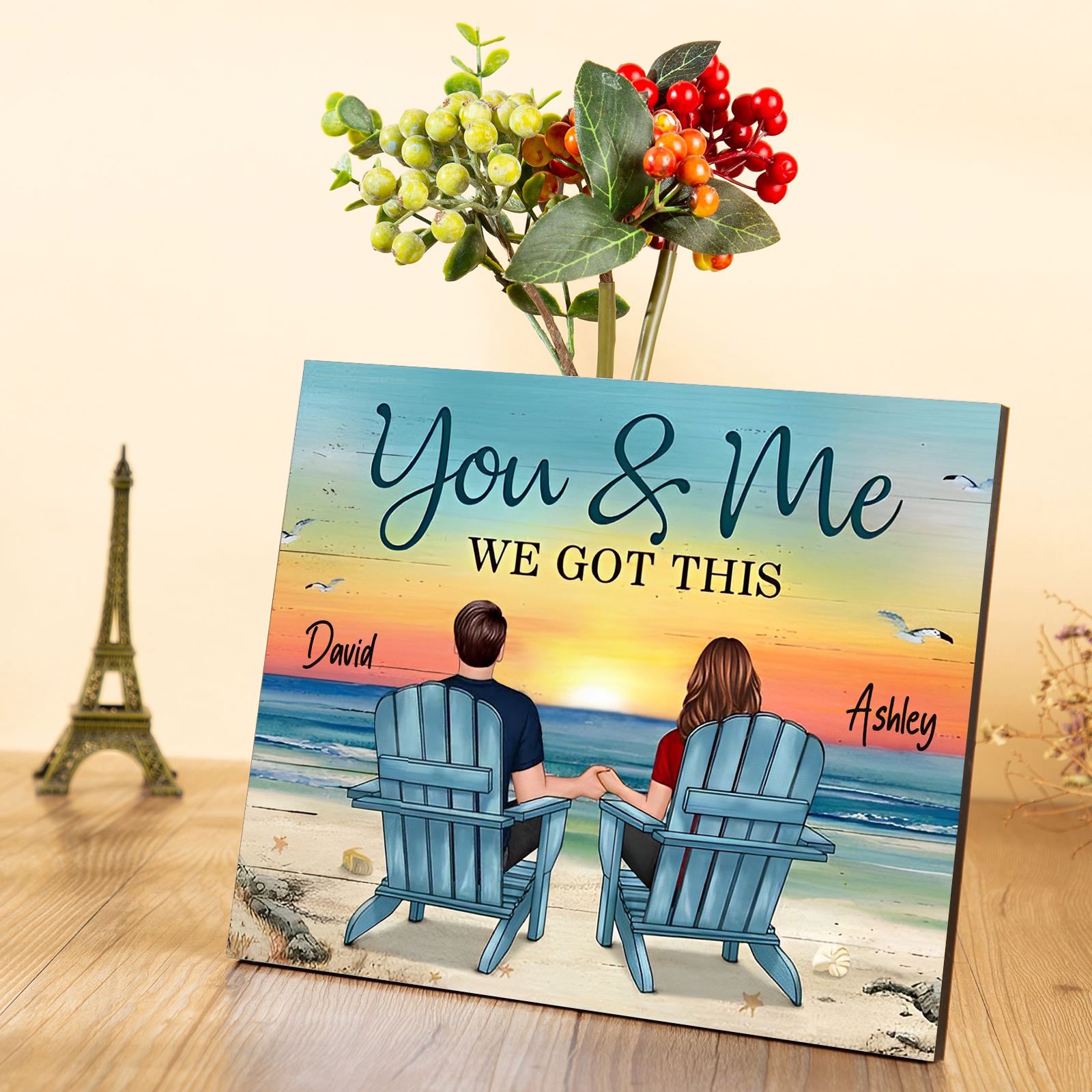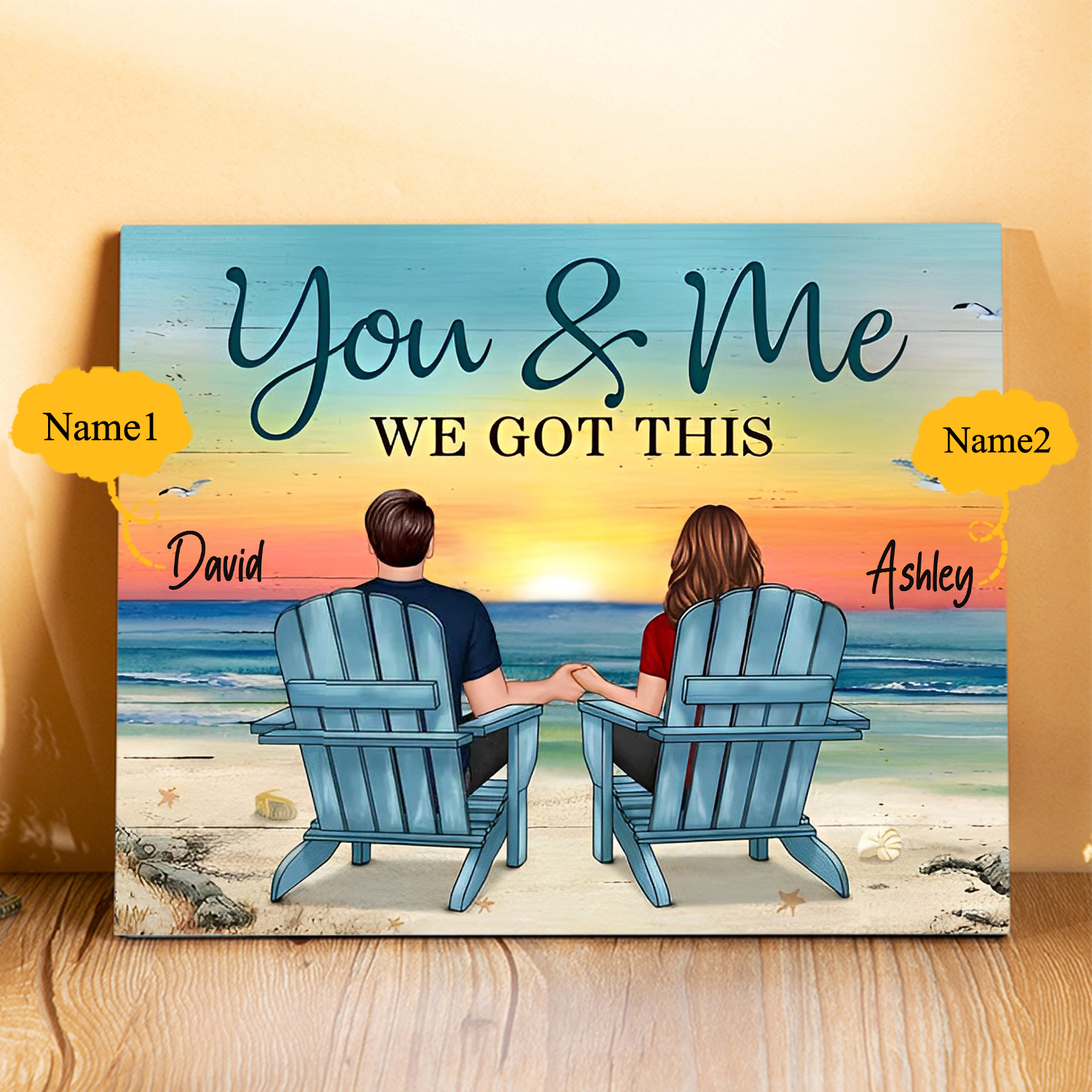 💖 This personalized couple's wood art immerses your and your partner's names forever into a romantic beach backdrop. This special decor not only adds warmth to your home but also serves as a heartfelt gift. Let your love story become a part of this beautiful seascape.