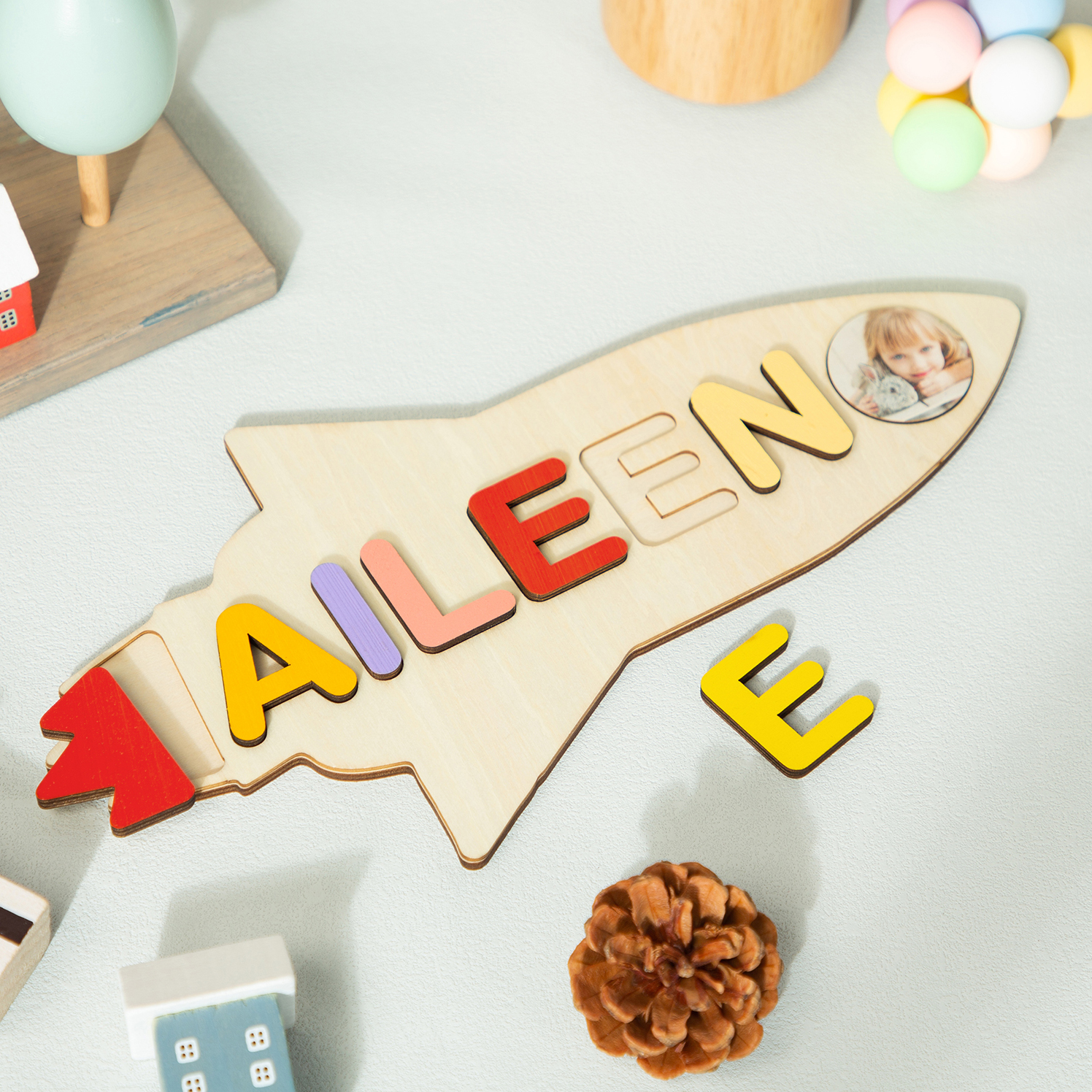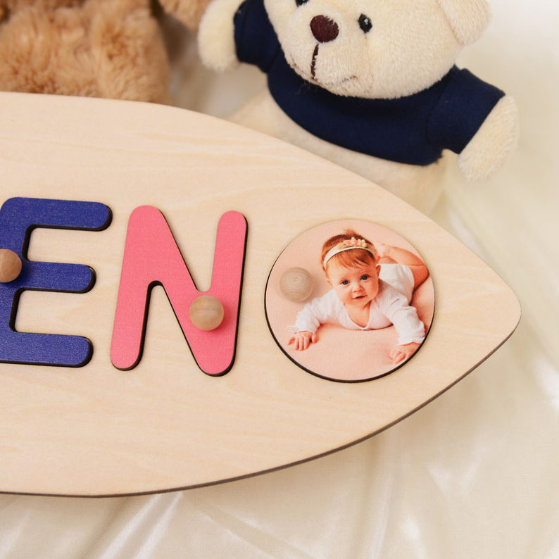 Personalized Wooden Name Rocket Puzzles with Photo Educational Gifts for Toddlers
