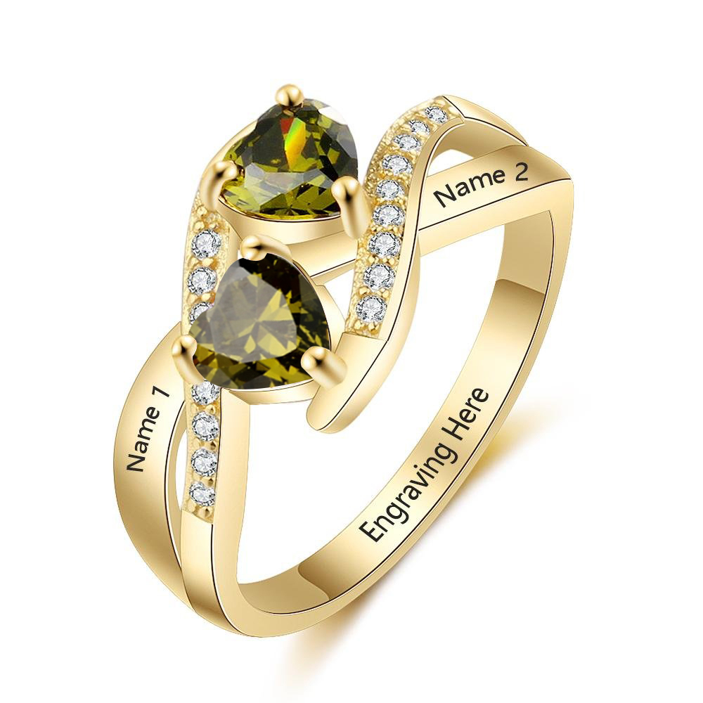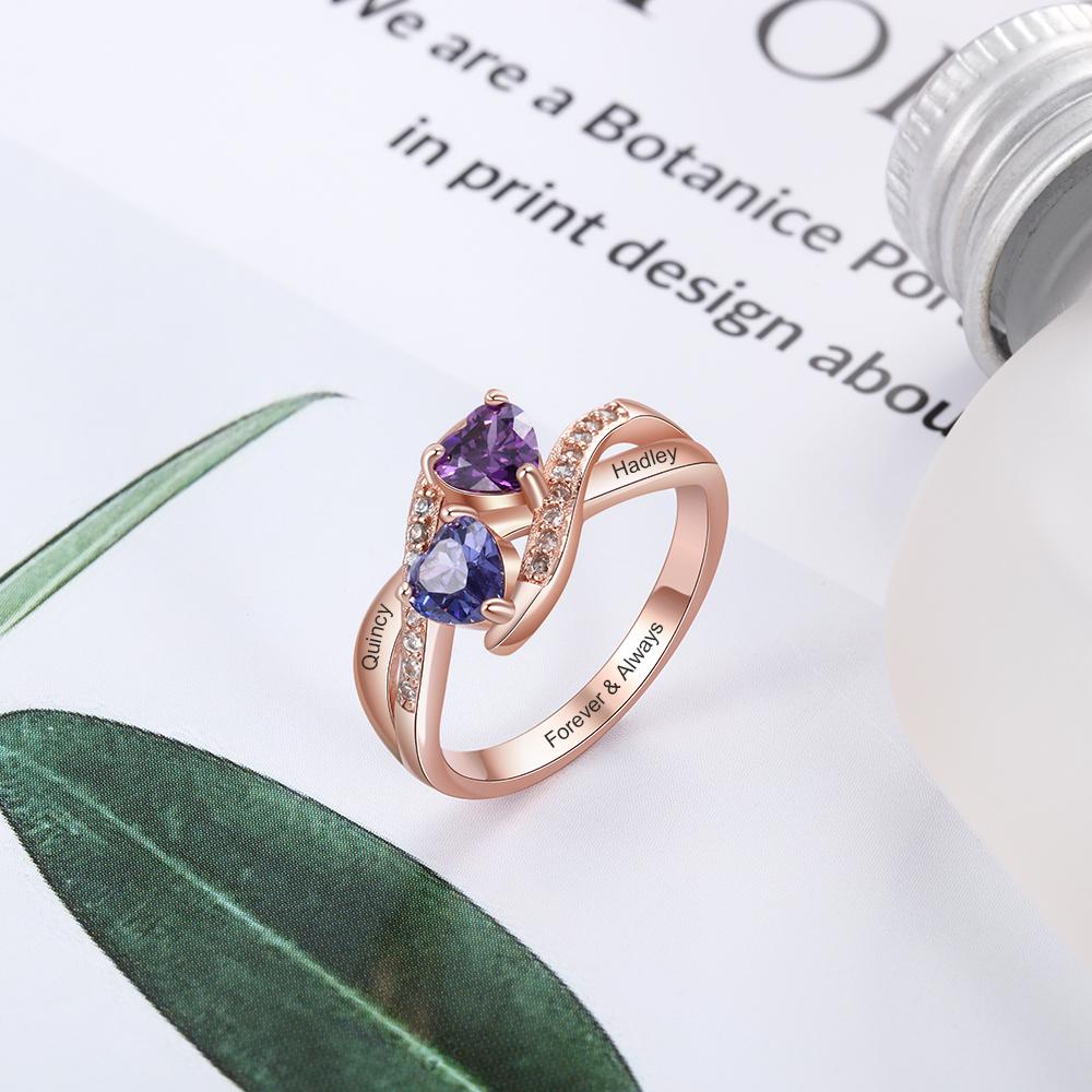Personalized: Can choose 2 birthstones, engraving 2 names and 1 inside text on the Ring