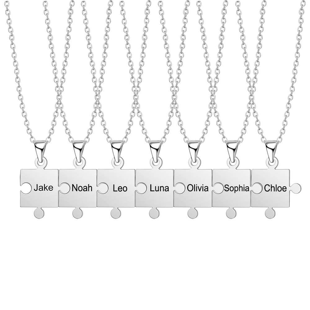 Puzzle Necklace Personalized Names 7 Pieces Necklace for Family Friends