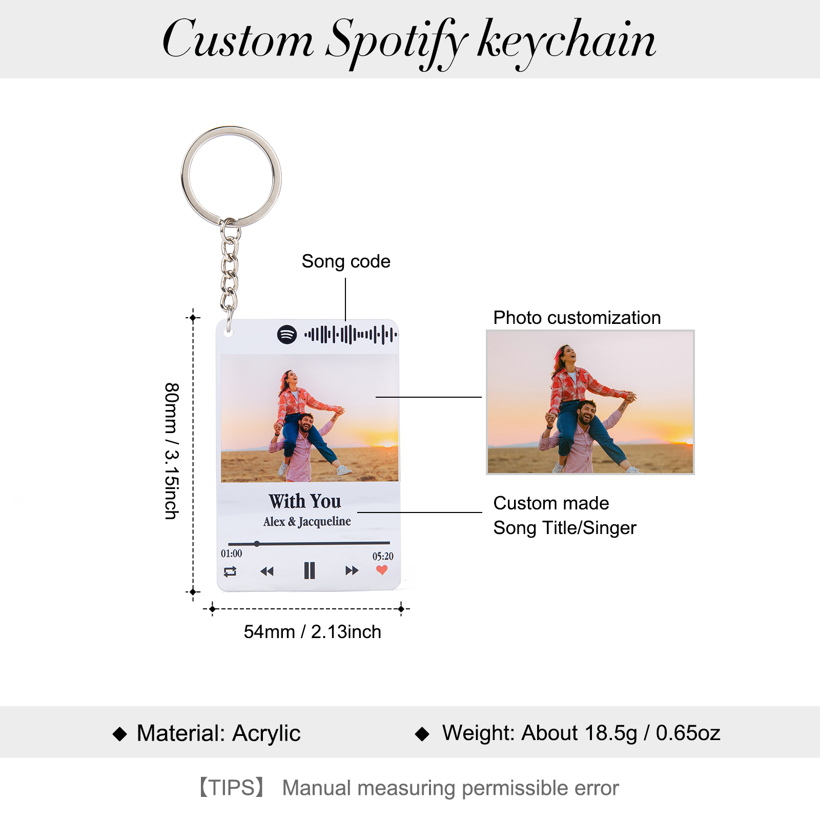 Scannable Spotify Code Keychain with Photo Music Couple Gifts