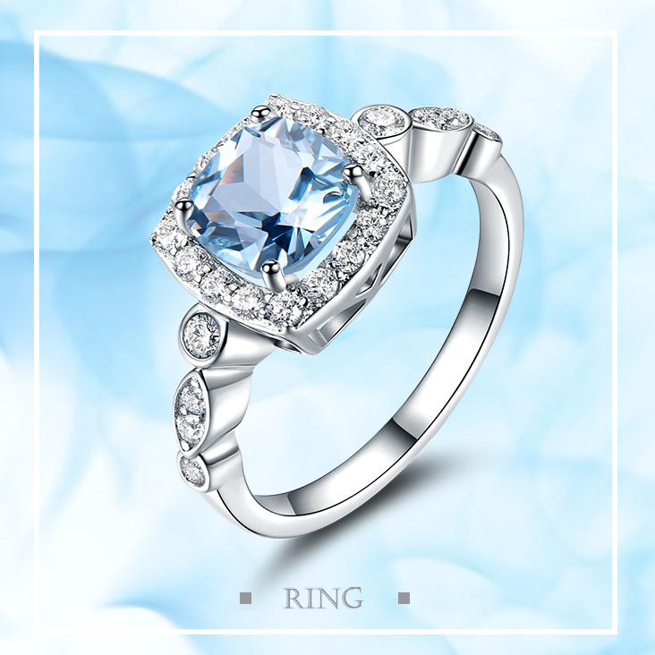 Square Cut Aquamarine Ring in Sterling Silver March Birthstone Ring