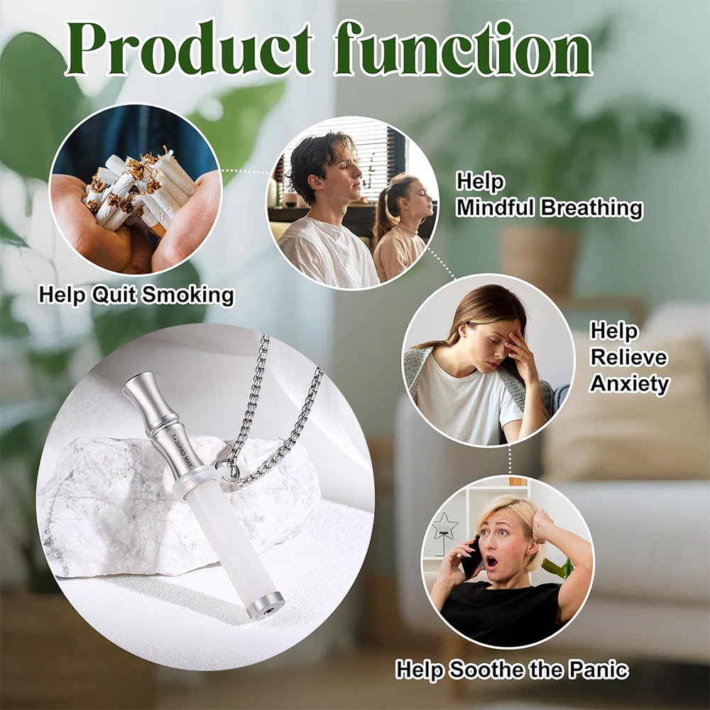 Keywords: breathing necklace, mindful breathing pendant, quit smoking aid gift, anxiety relief gift, stress relief necklace, gemstone breathing tool, wellness gift for men and women, habit replacement accessory, portable meditation tool