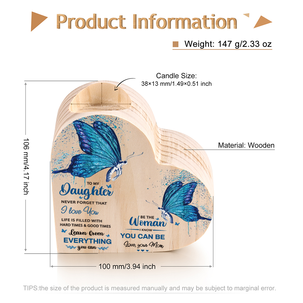 To My Daughter-Wooden Heart Candle Holder Butterfly Candlesticks "I Know You Can Be"
