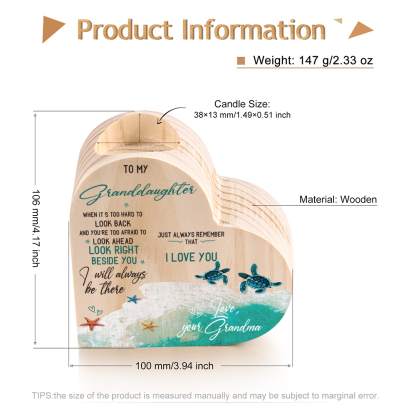 To My Granddaughter Wooden Heart Candle Holder "remember how much I love you"