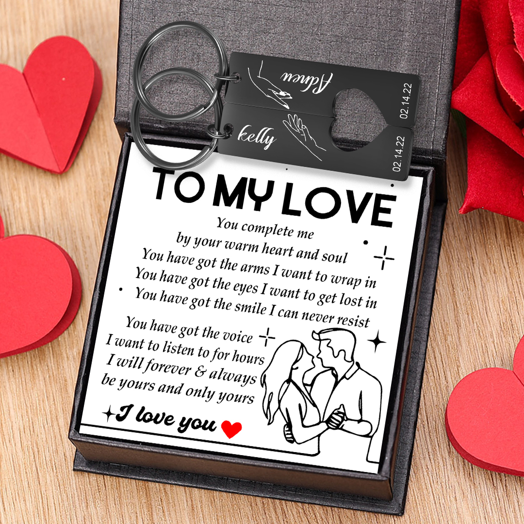 To My Man/My Love Keychain Set Personalized Promise Couple Keychain Engraved 2 Names & Date Keyring Heart Matching Gifts
