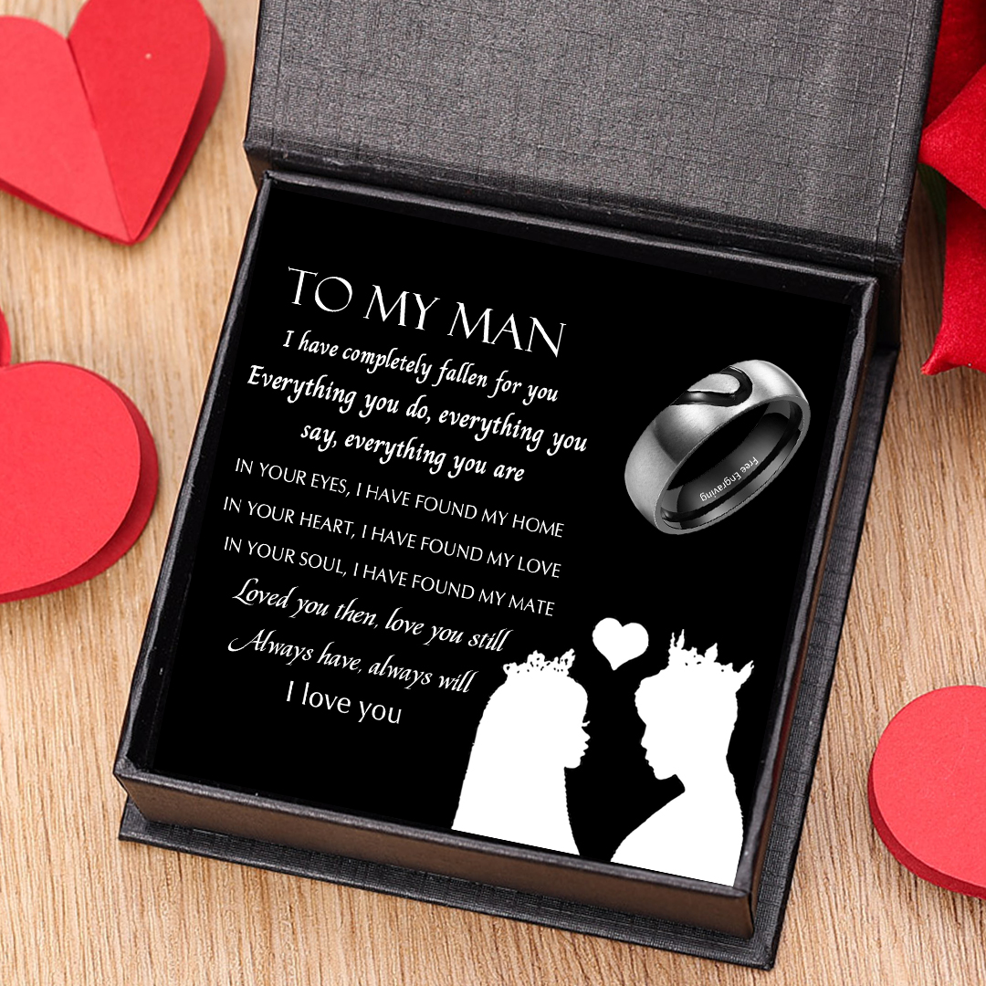 To My Man Ring Set Promise Ring for Couple Heart Matching Ring Engraving Text Black Personalized Ring for Him