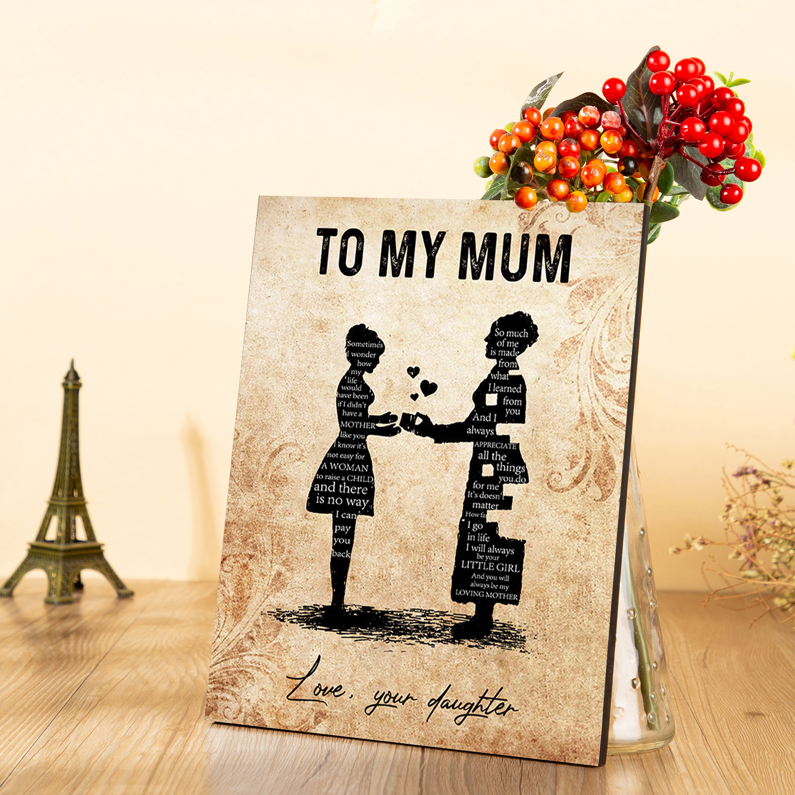 To My Mum Wooden Plaque Mother & Kid Silhouette Home Decoration Mother's Day Gifts - You Will Always Be My Loving Mother