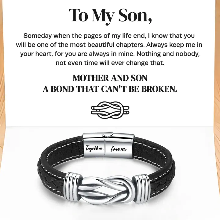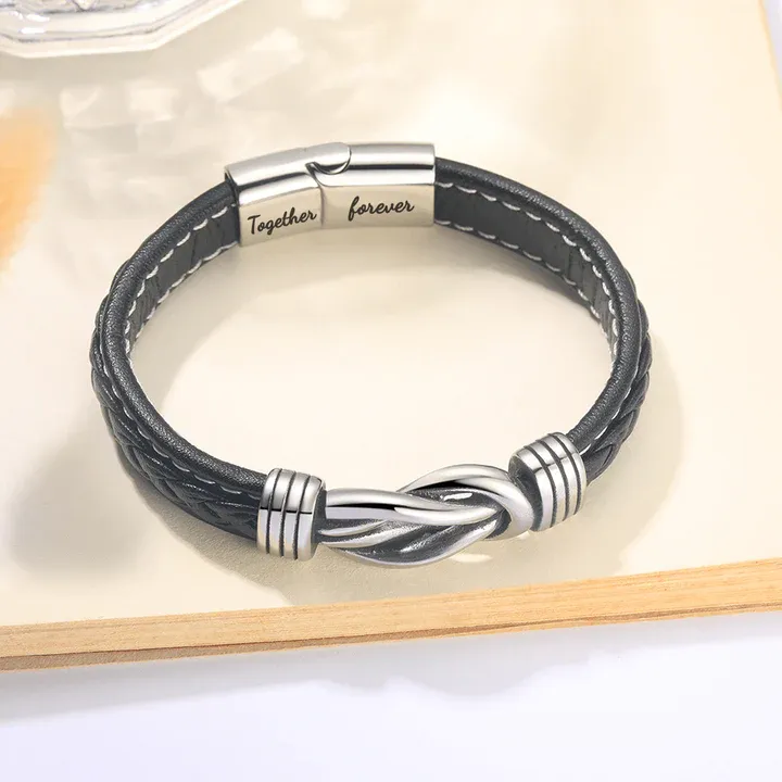 To My Son Together Forever Leather Knot Bracelet Graduation Birthday Gift