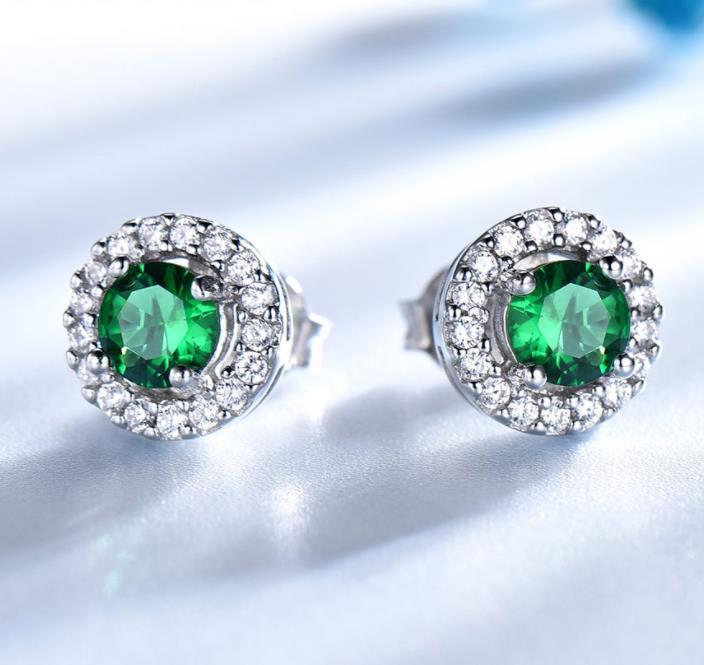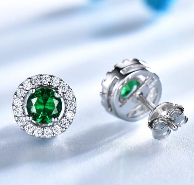 Vintage Emerald Stud Earrings with Diamond In Sterling Silver