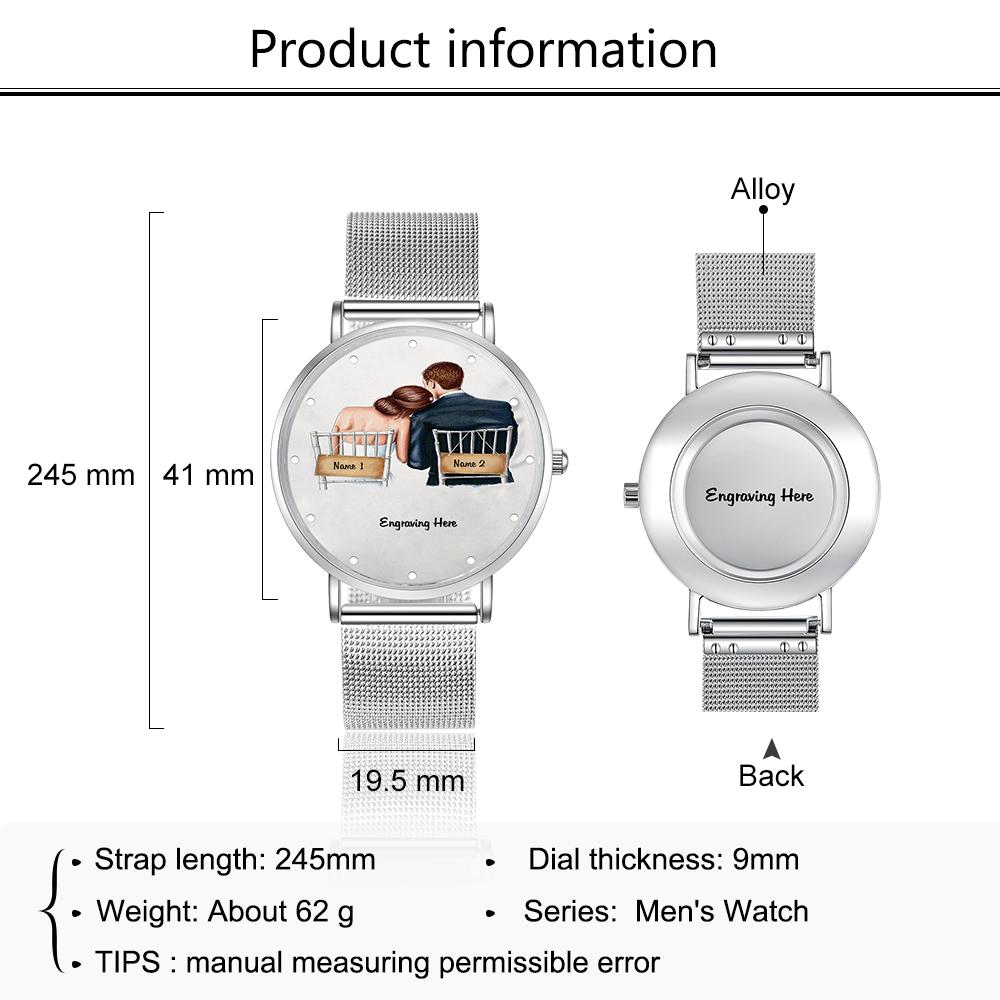 Watch For Couples Men Engraved Names Watch Alloy Bracelet