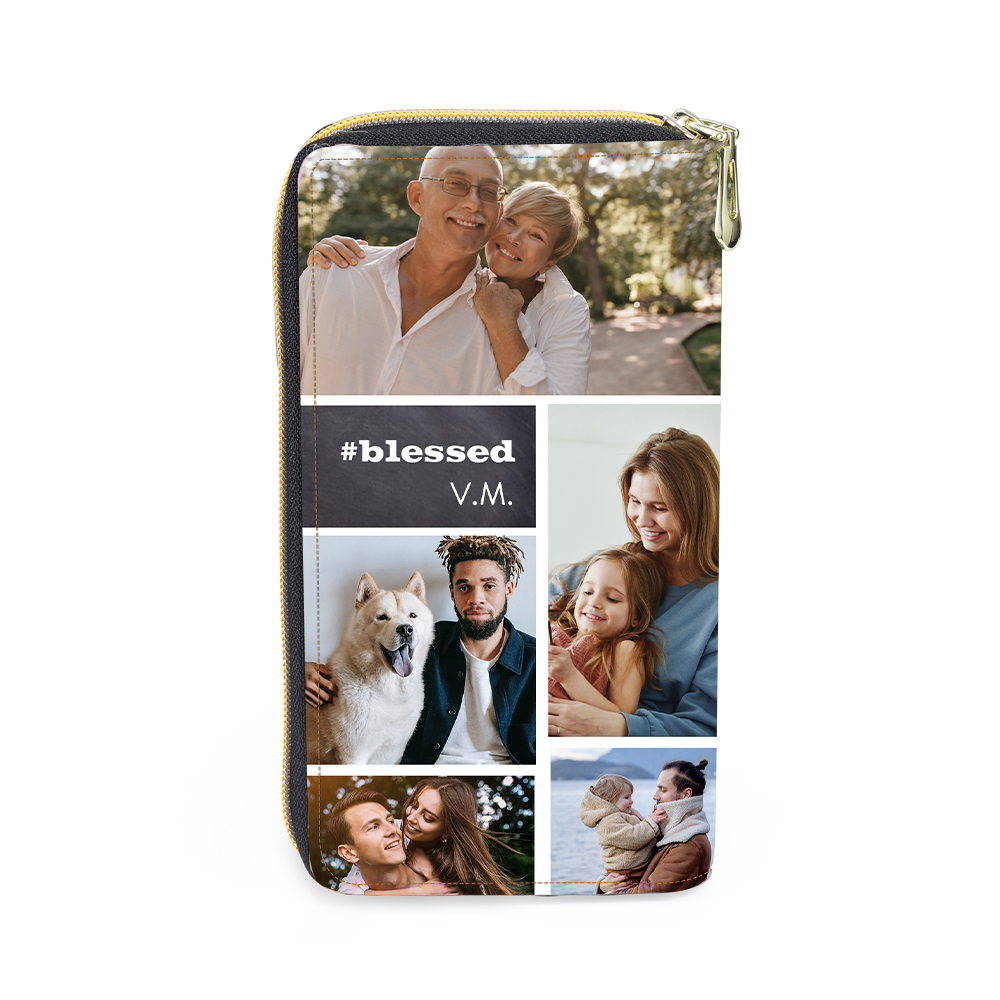Women Photo Wallet Personalized 10 Photos Leather Zipper Purse