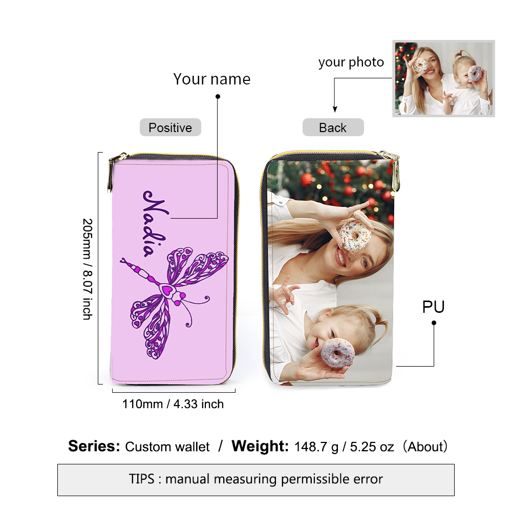 Women Photo Wallet Personalized Dragonfly Leather Zipper Wallet Mother's Day Gift