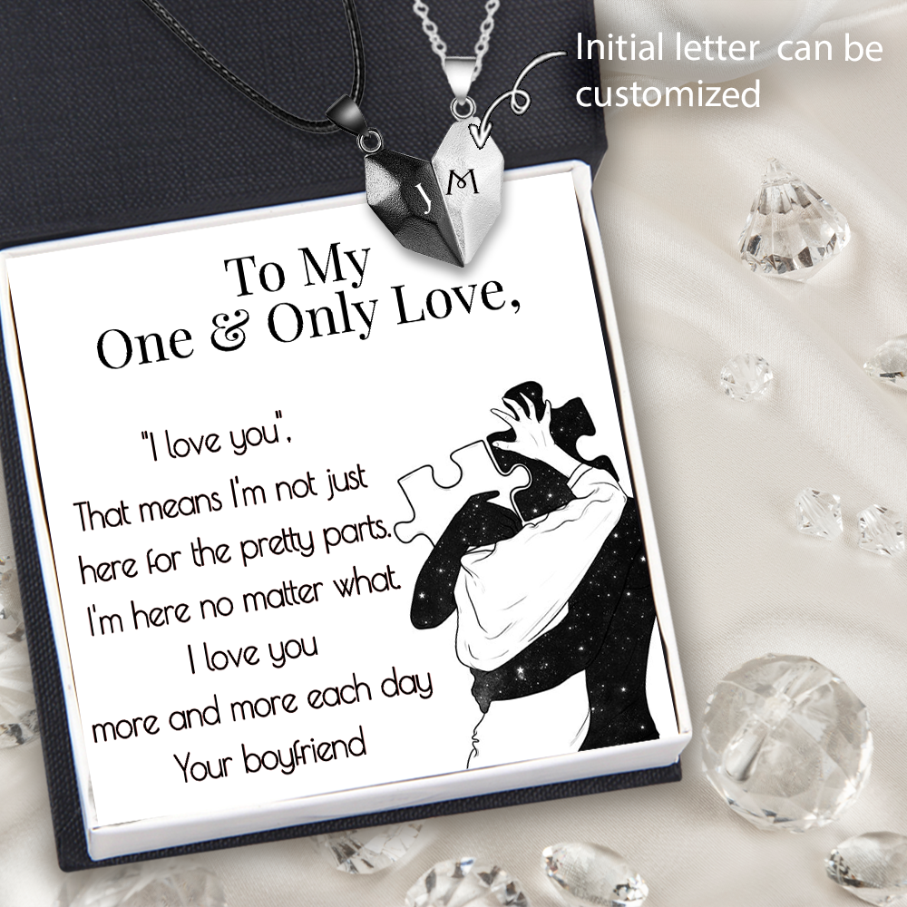 To My Only Love Magnetic Heart Necklace Custom Initial Two Souls One Heart Necklace