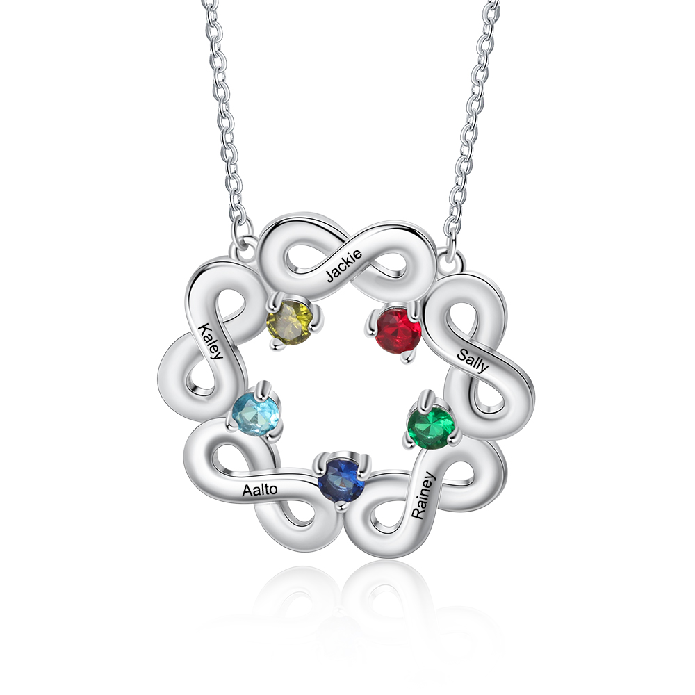 Personalized Infinity Necklace with 5 Birthstones Family Necklace for Mom