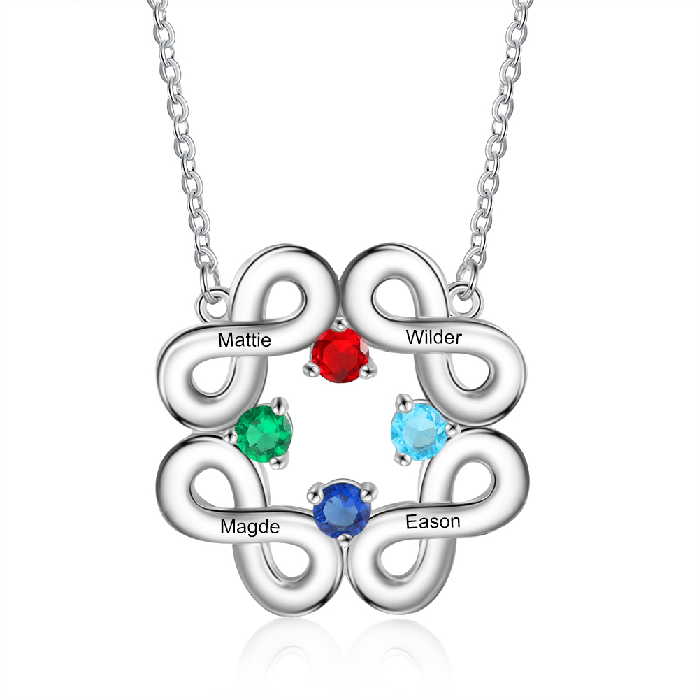 Personalized Infinity Necklace with 4 Birthstones Family Necklace for Mom
