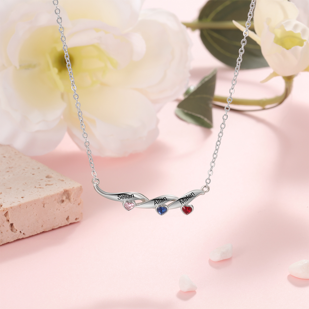 Personalized Twisted Pendant Necklace Custom 3 Birthstones & 3 Names Necklace Gifts for Her