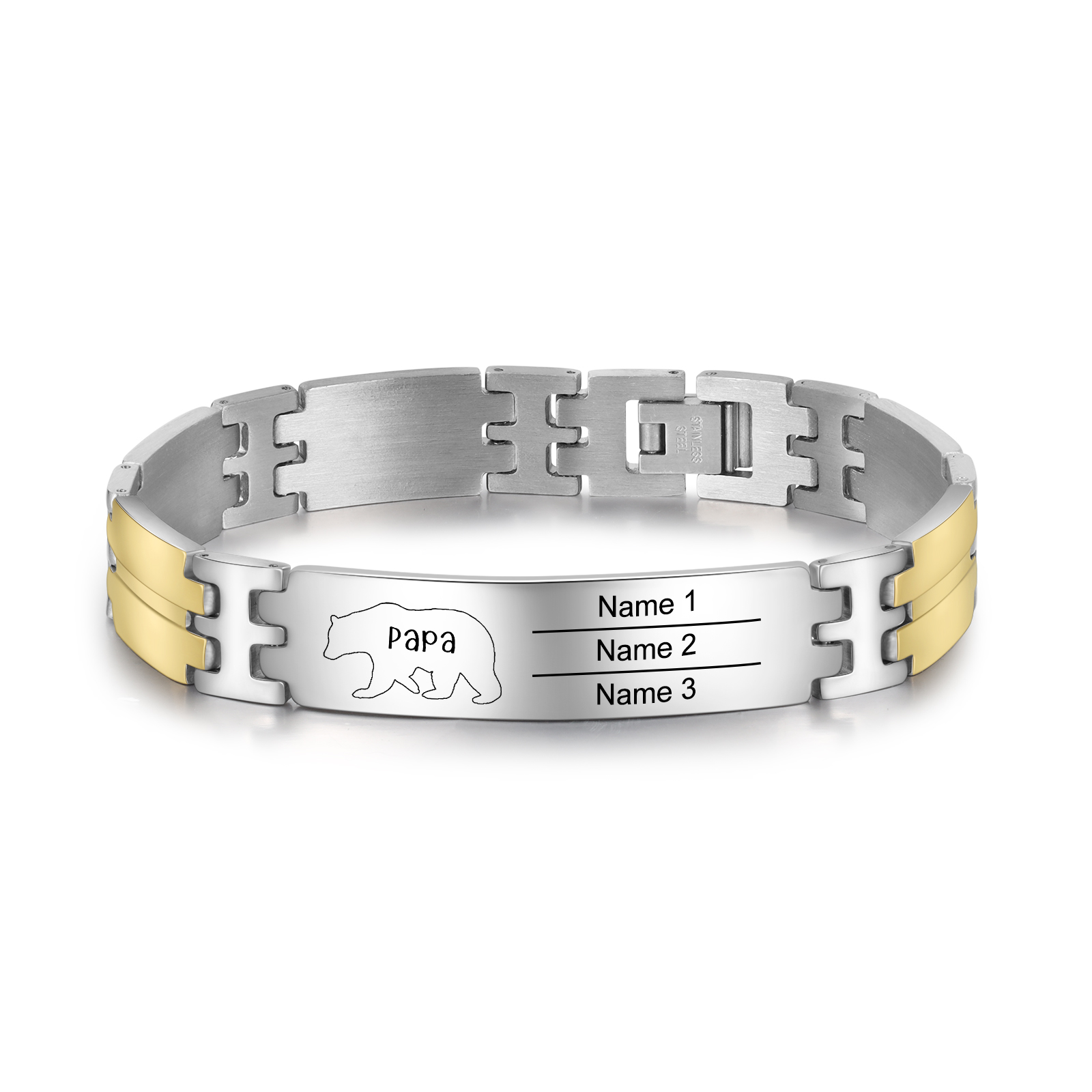 Personalized Papa Bear Bracelet Custom 3 Names Wristband ID Bar Bracelet for Dad