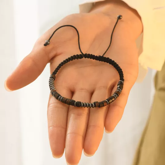Braided Men's Cross Bracelet Black Gallstone Bracelet