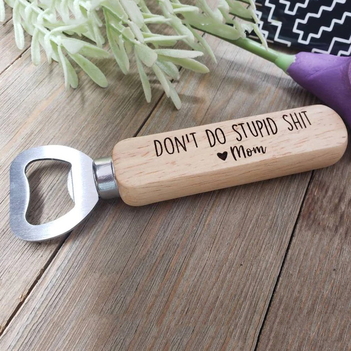 Don't Do Stupid Love Mom Wooden Bottle Opener Funny Gift for Kids