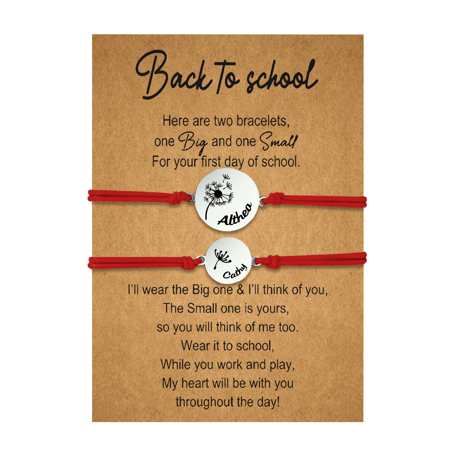 2 Pcs Dandelion Bracelet Set Custom 2 Names Adjustable Bracelets Back to School Gifts for Daughter