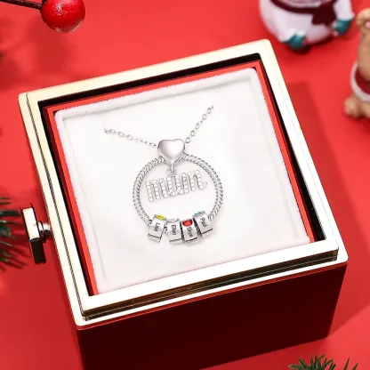 4 Names - Personalized Mum Circle Necklace Gift Set with Gift Box Custom Names & Birthstones Pendant Necklace Gift For Mum