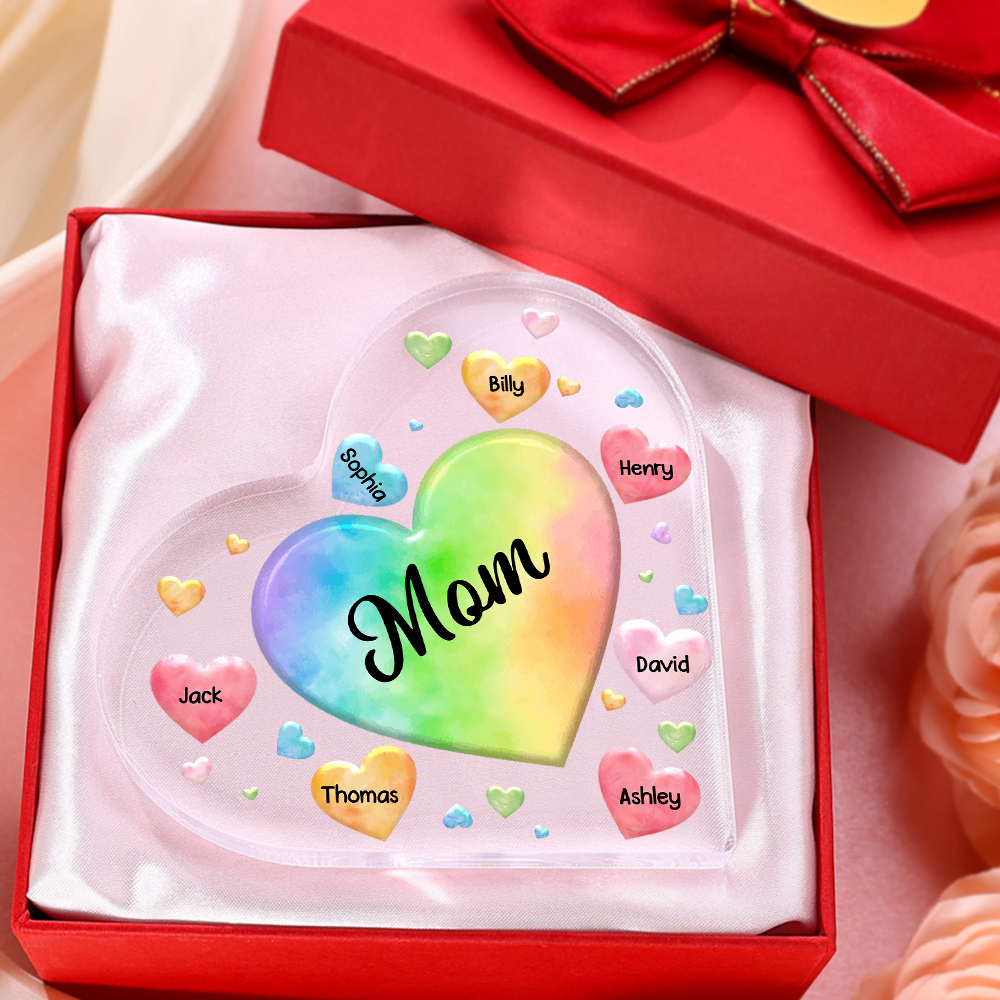 7 Names - Personalized Acrylic Heart Keepsake Custom Text Colorful Hearts Ornament Gift for Mother/Grandma
