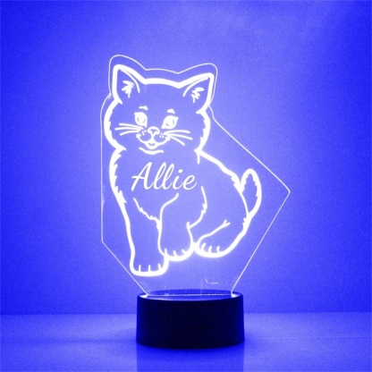Personalized Cat Night Light Custom Name 7 Colors LED Lamp for Kid