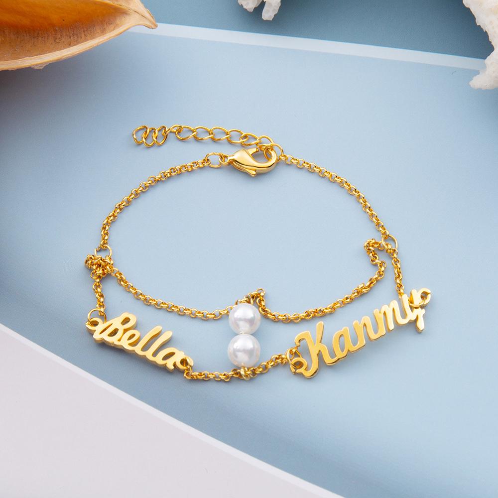 Name Bracelet Classical Bracelet with Pearls Custom 2 names Gifts