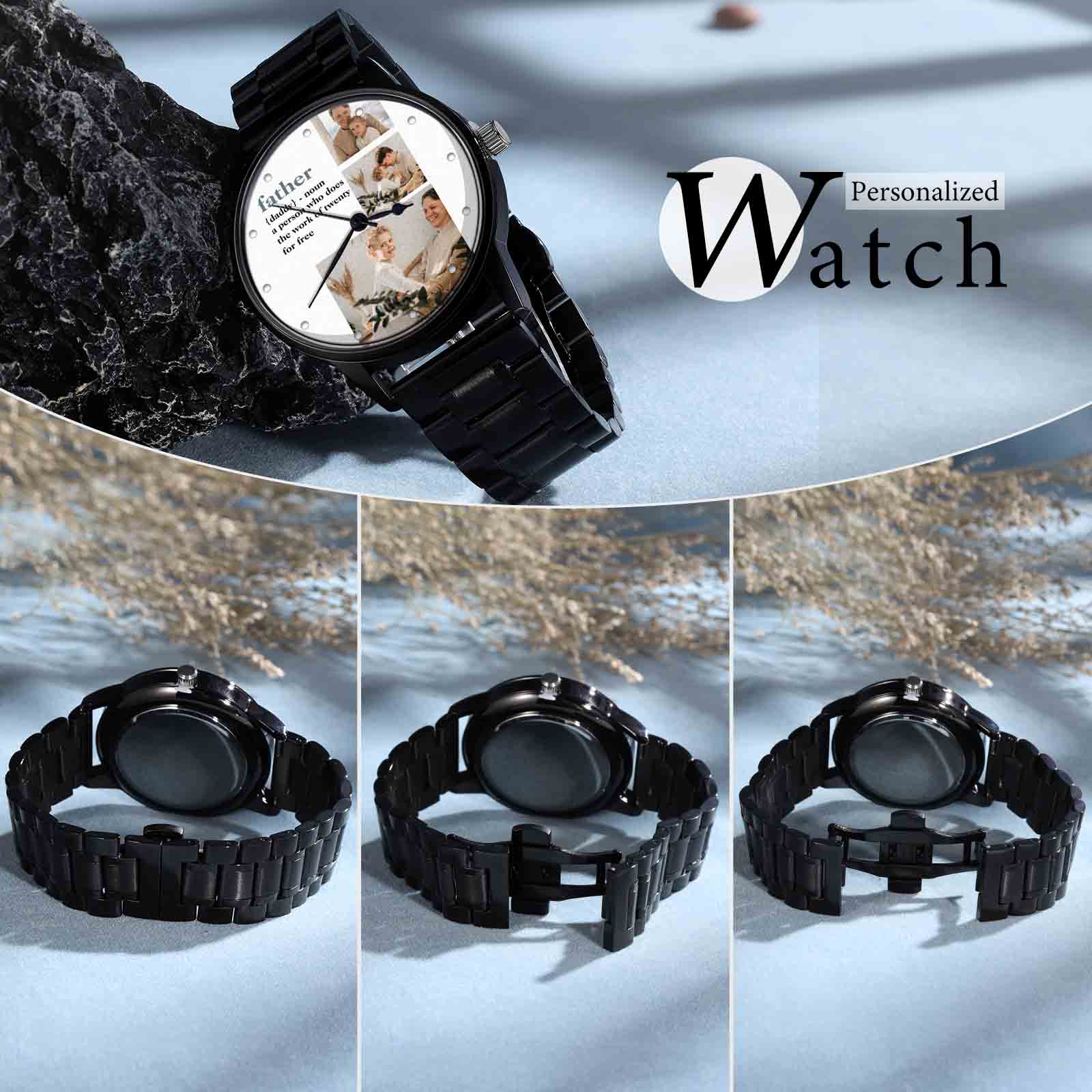 Personalized 3 Photos Watch Stainless Steel Strap Gifts for Father