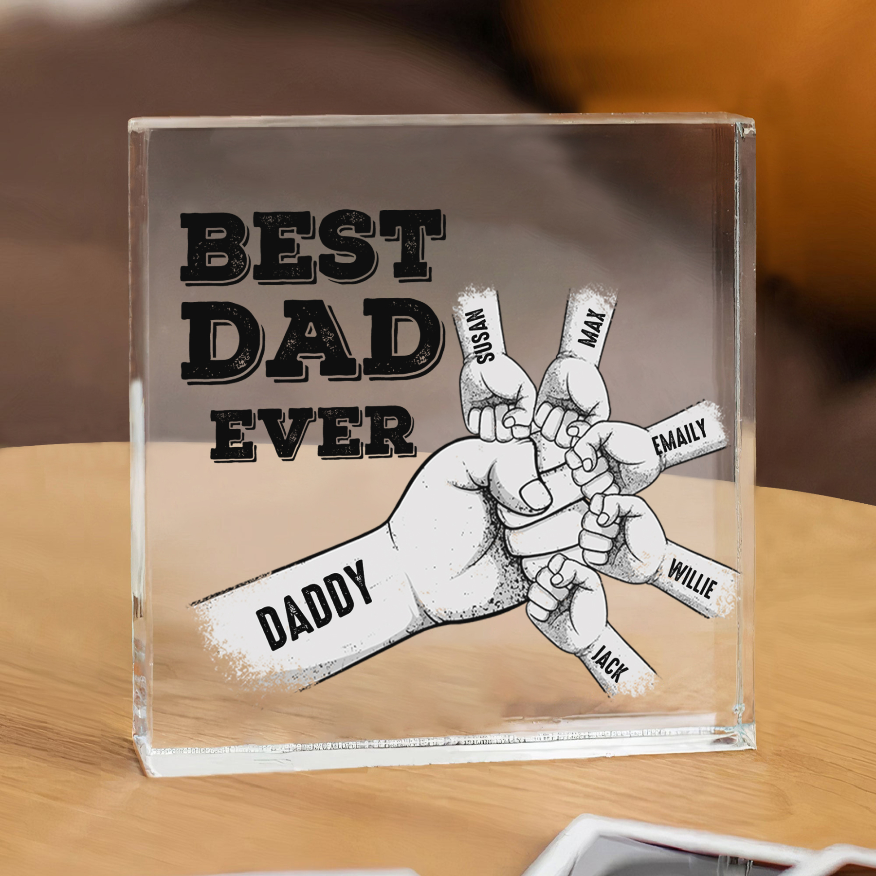 Personalized 6 Names Acrylic Square Keepsake Fist Bump Rectangle Plaque Father's Day Gifts - Best Dad Ever