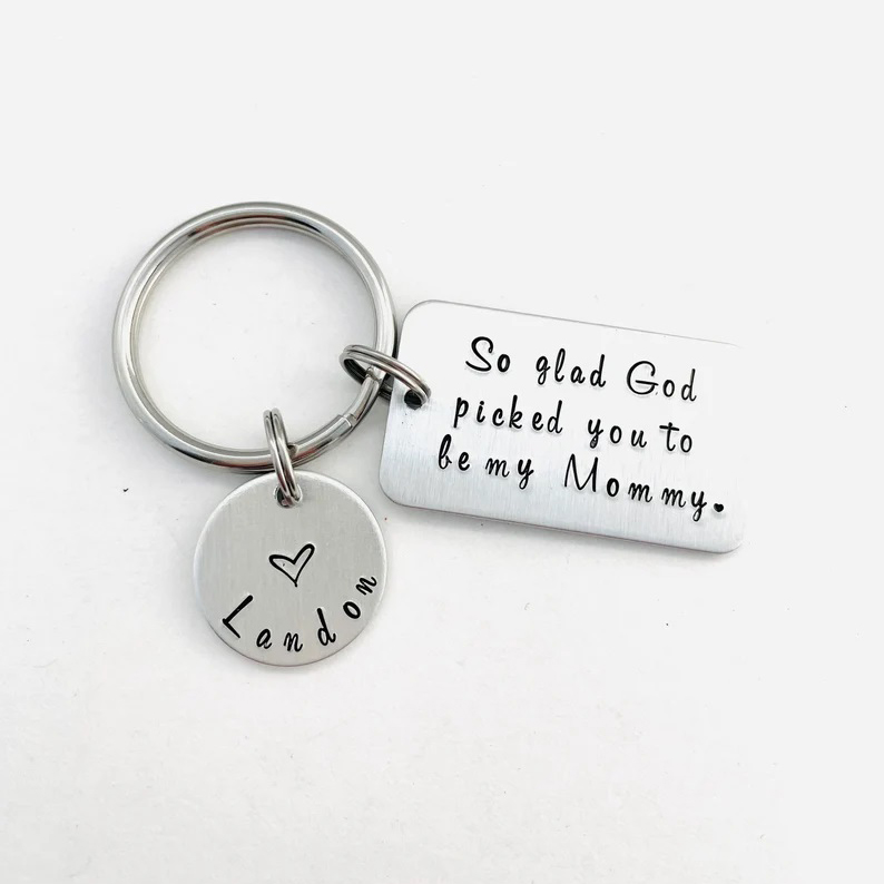 Personalized Name Keychain for Mom "So Glad God Picked You to Be My Mom"