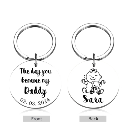 Personalized Text & Date & Name Keychain Circle Keychain Father's Day Gifts for Family