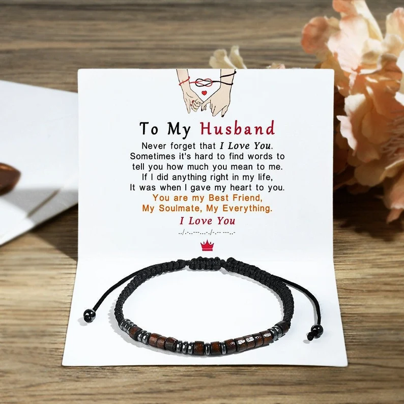 To My Husband I Love You Morse Code Braided Rope Bracelet for Him