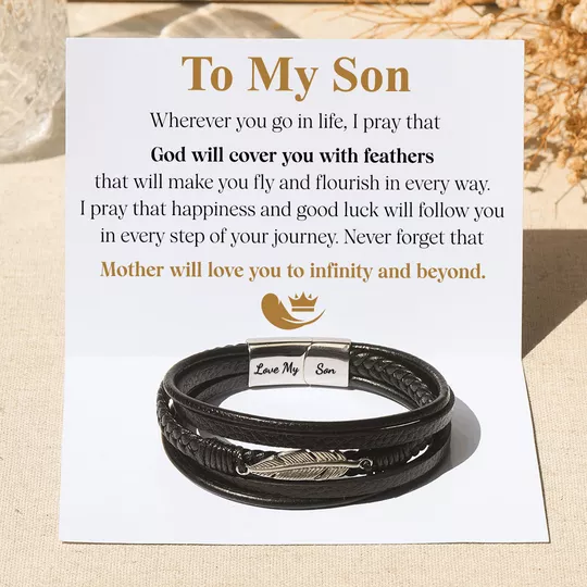 To My Son "Love You To Infinity And Beyond" Feather Bracelet for son