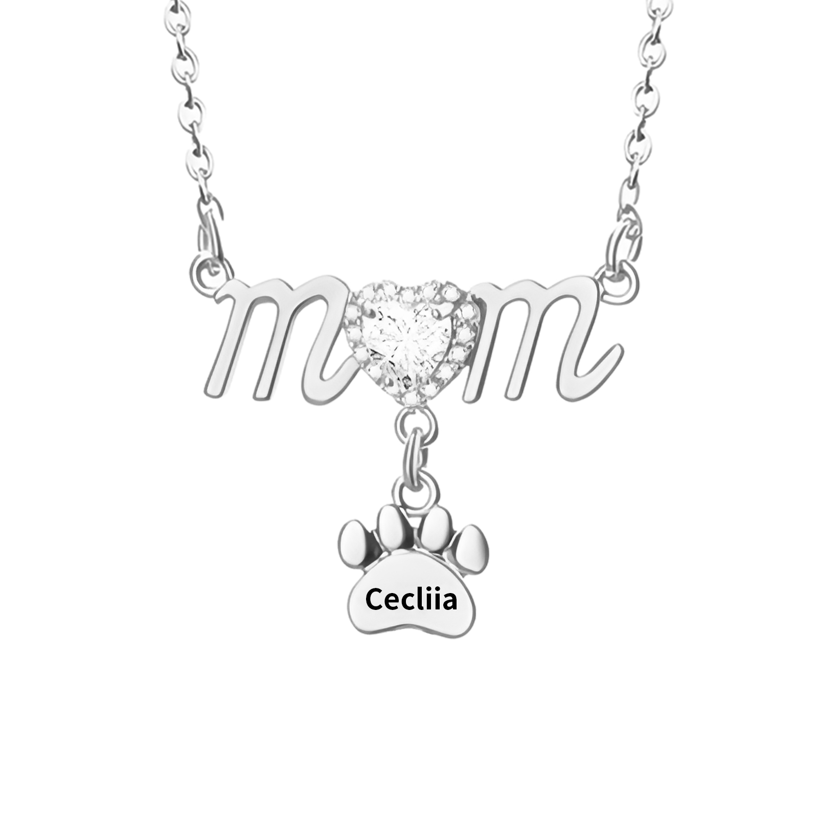 Personalized 1 Name Paw Pendant Necklace Custom Mom Necklace Mother's Day Gift for Her