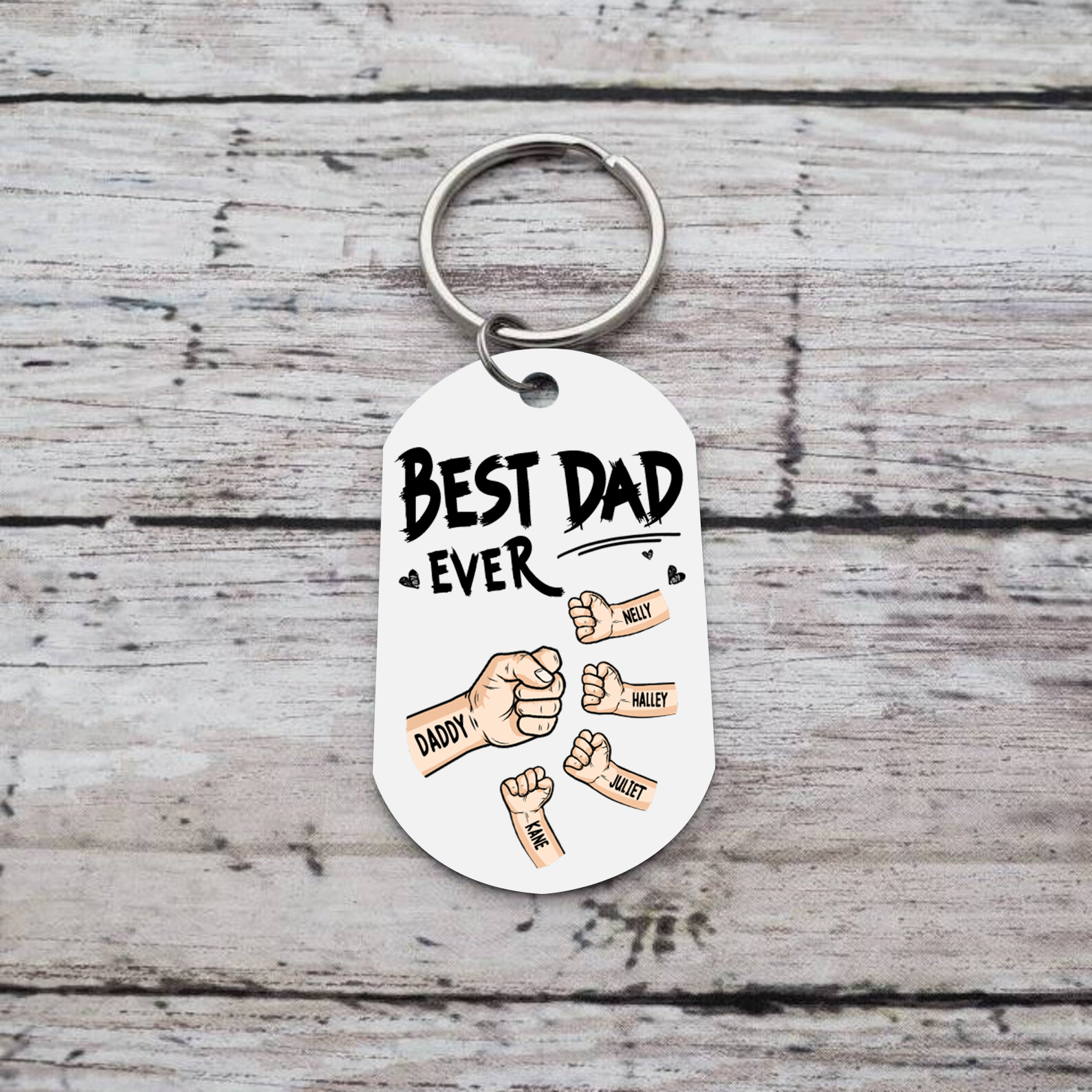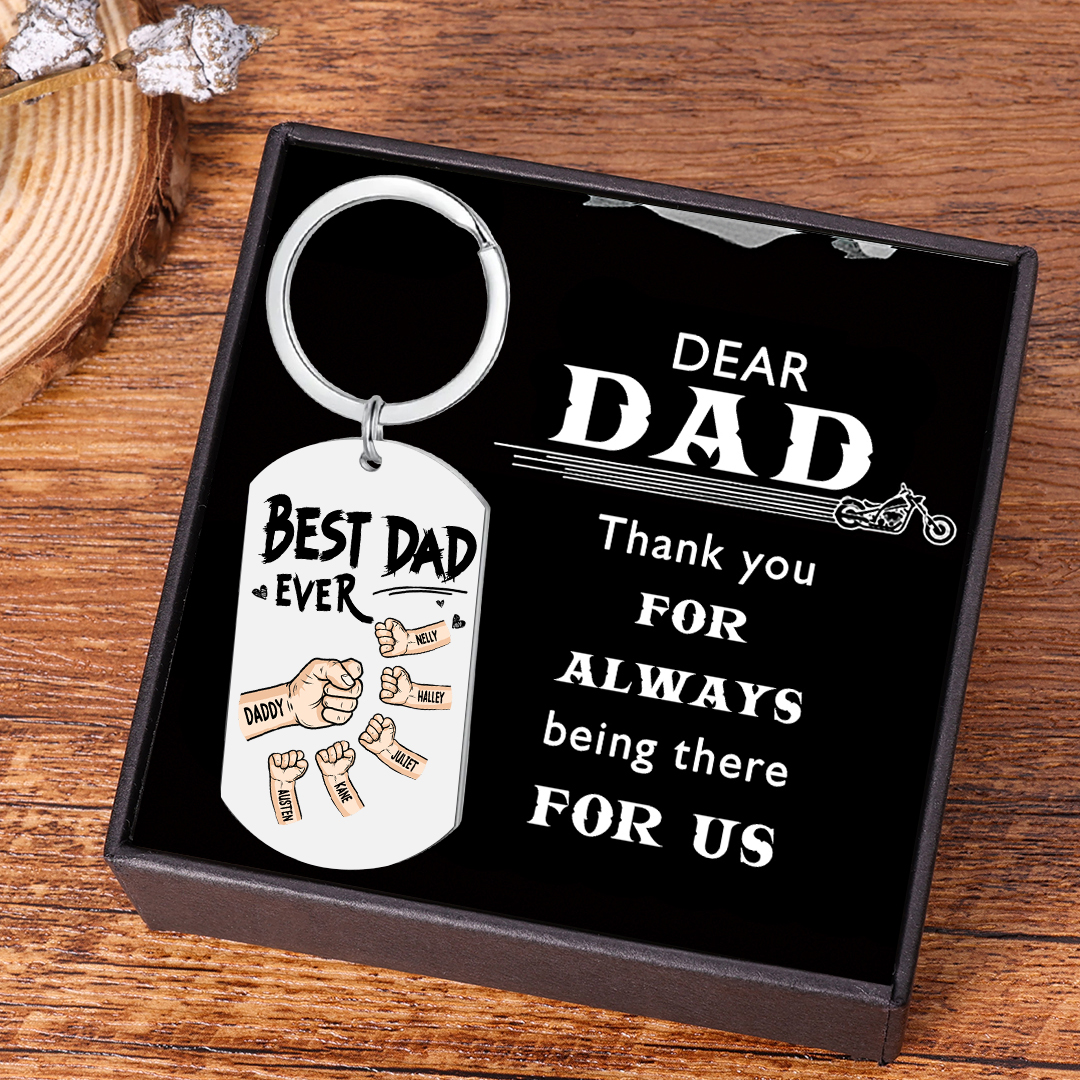 Personalized 5 Names Keychain Custom Fist Bump Keychain Father's Day Gift - Best Dad Ever