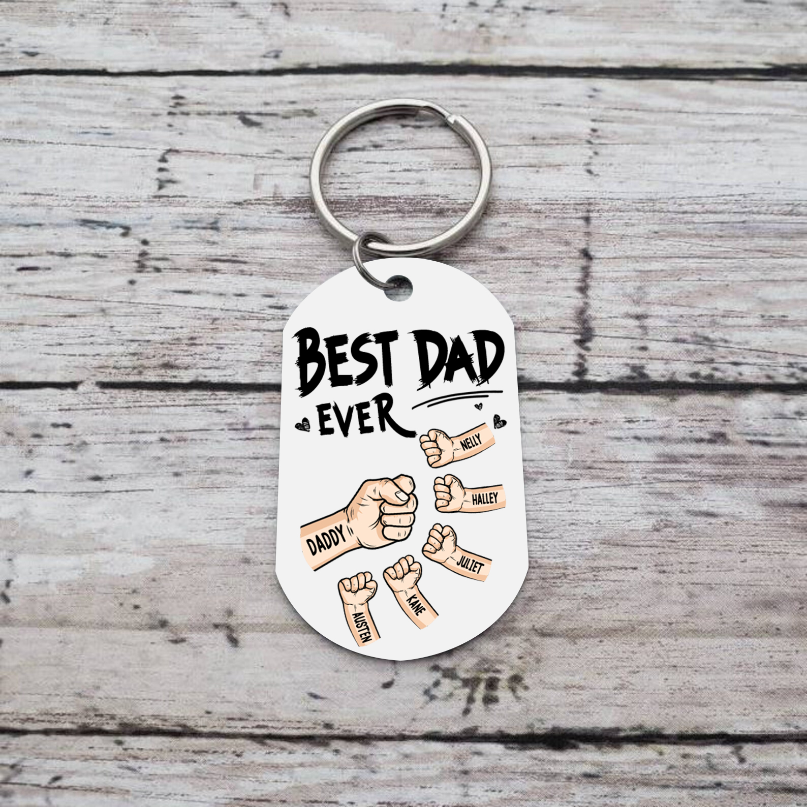 Personalized 6 Names Keychain Custom Fist Bump Keychain Father's Day Gift - Best Dad Ever
