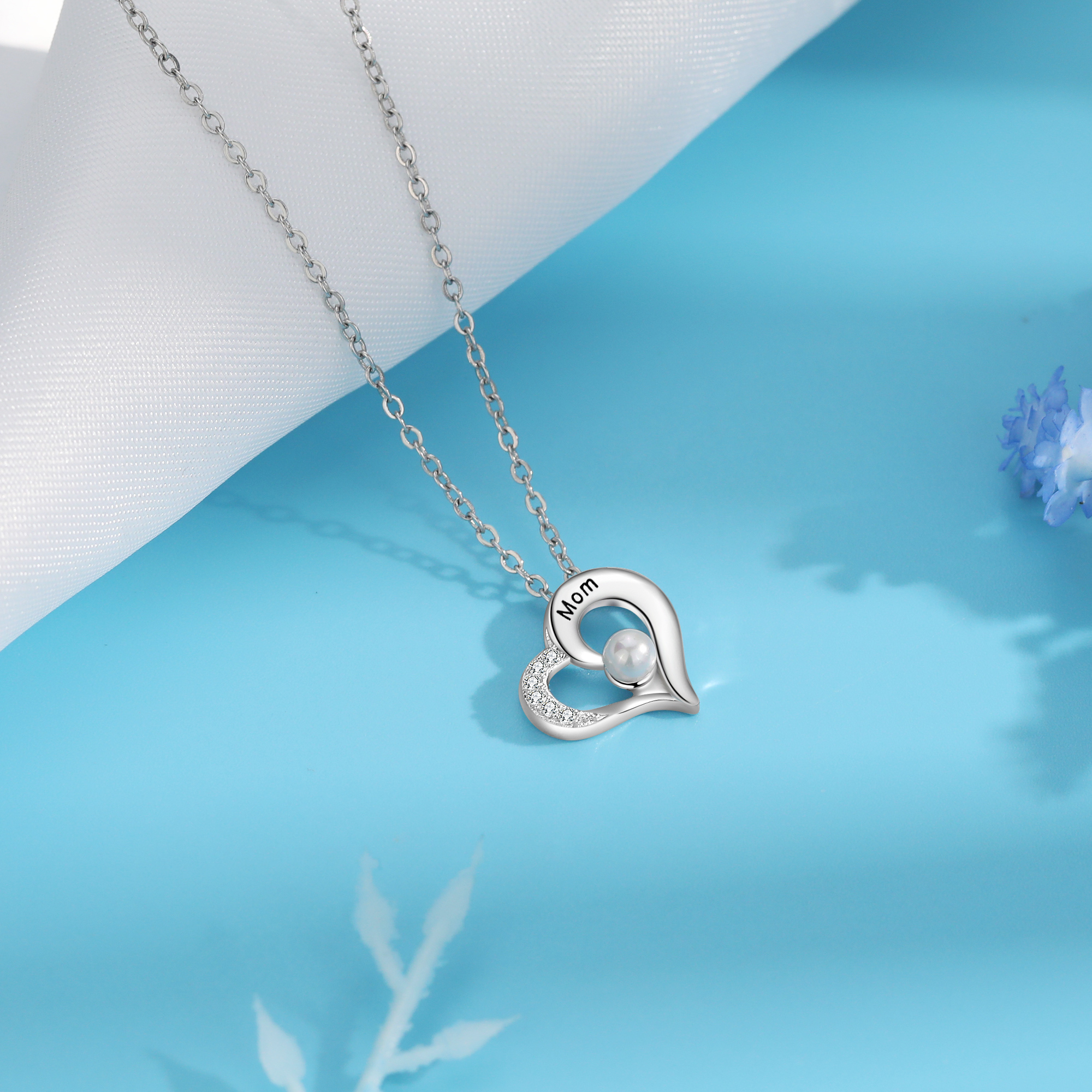 Custom Heart Pearl Necklace Engrave 1 Name Family Necklace