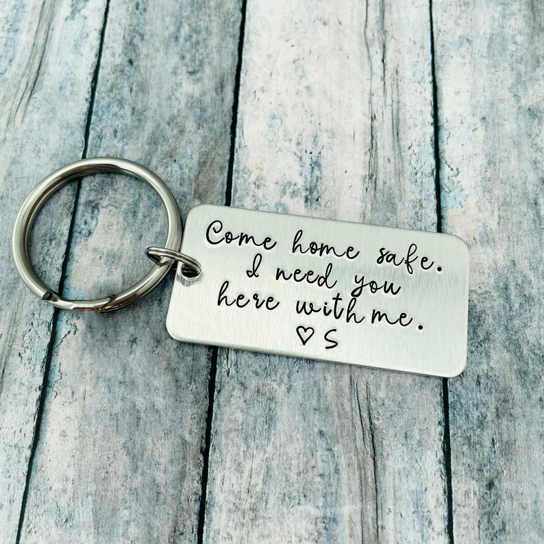 Come Home Safe I Need You Here With Me Keychain Custom Initial Keychain