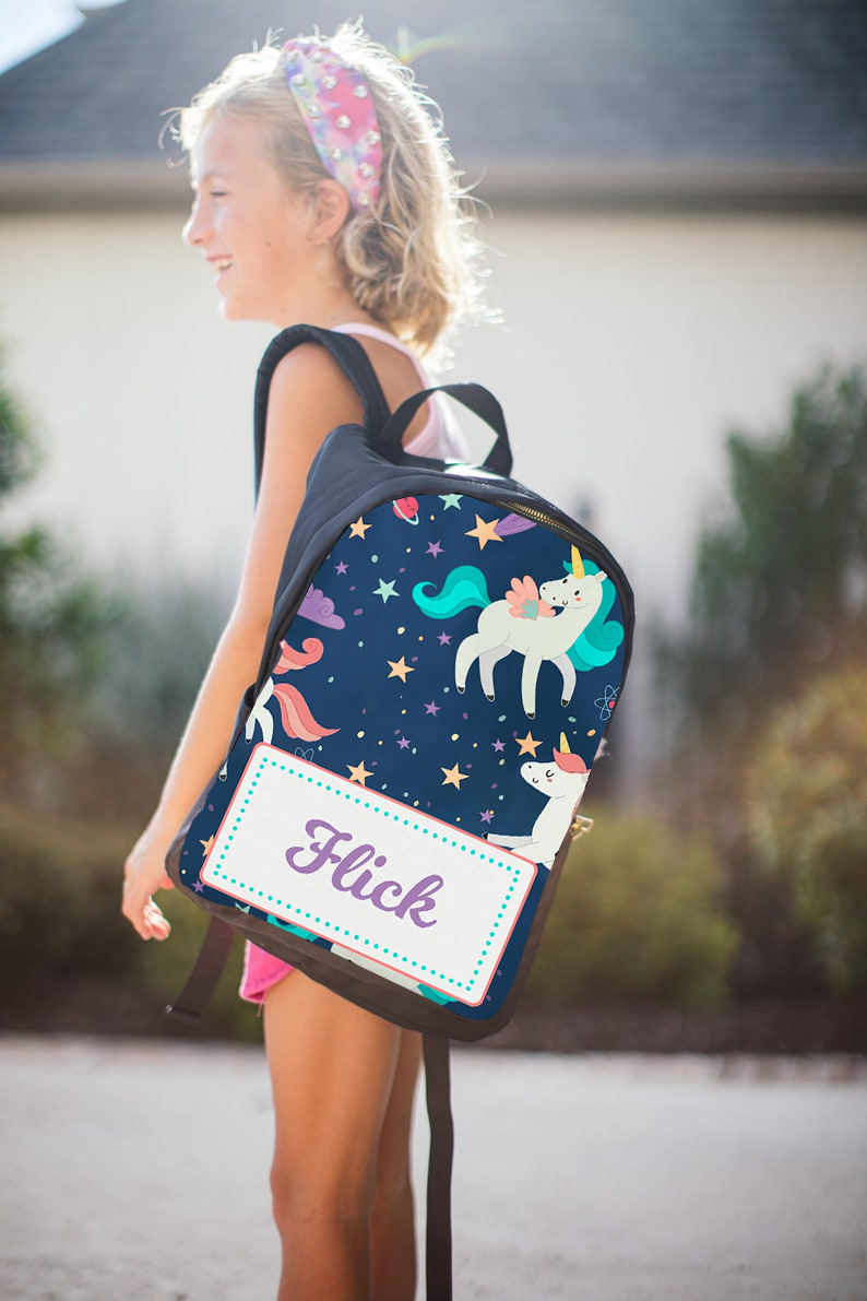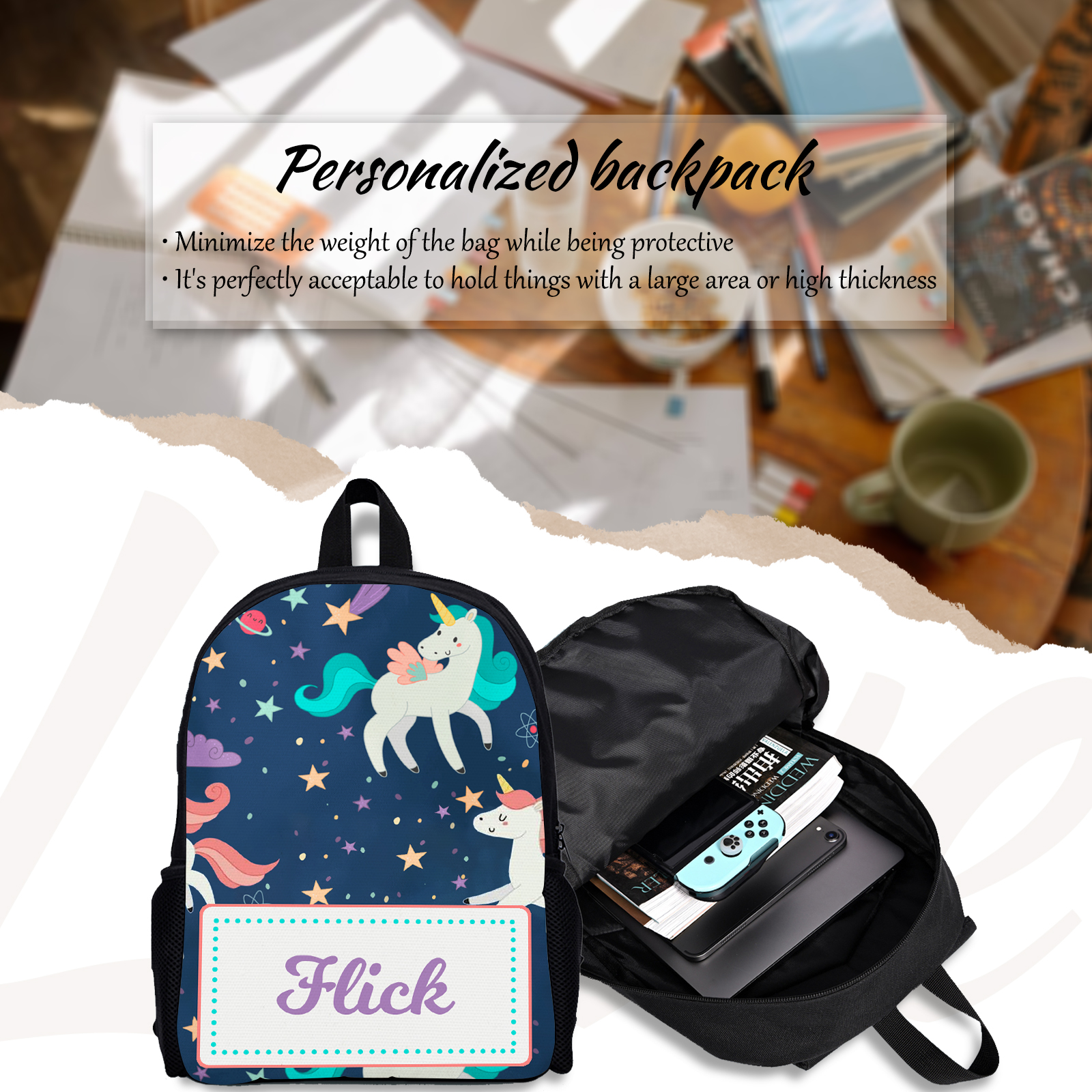 Custom Name Schoolbag Personalized Blue Unicorn Backpack Travel Bag for Kids