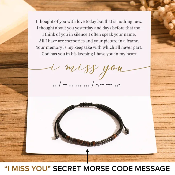 I Miss You Morse Code Bracelet Memorial Gift for Men Women