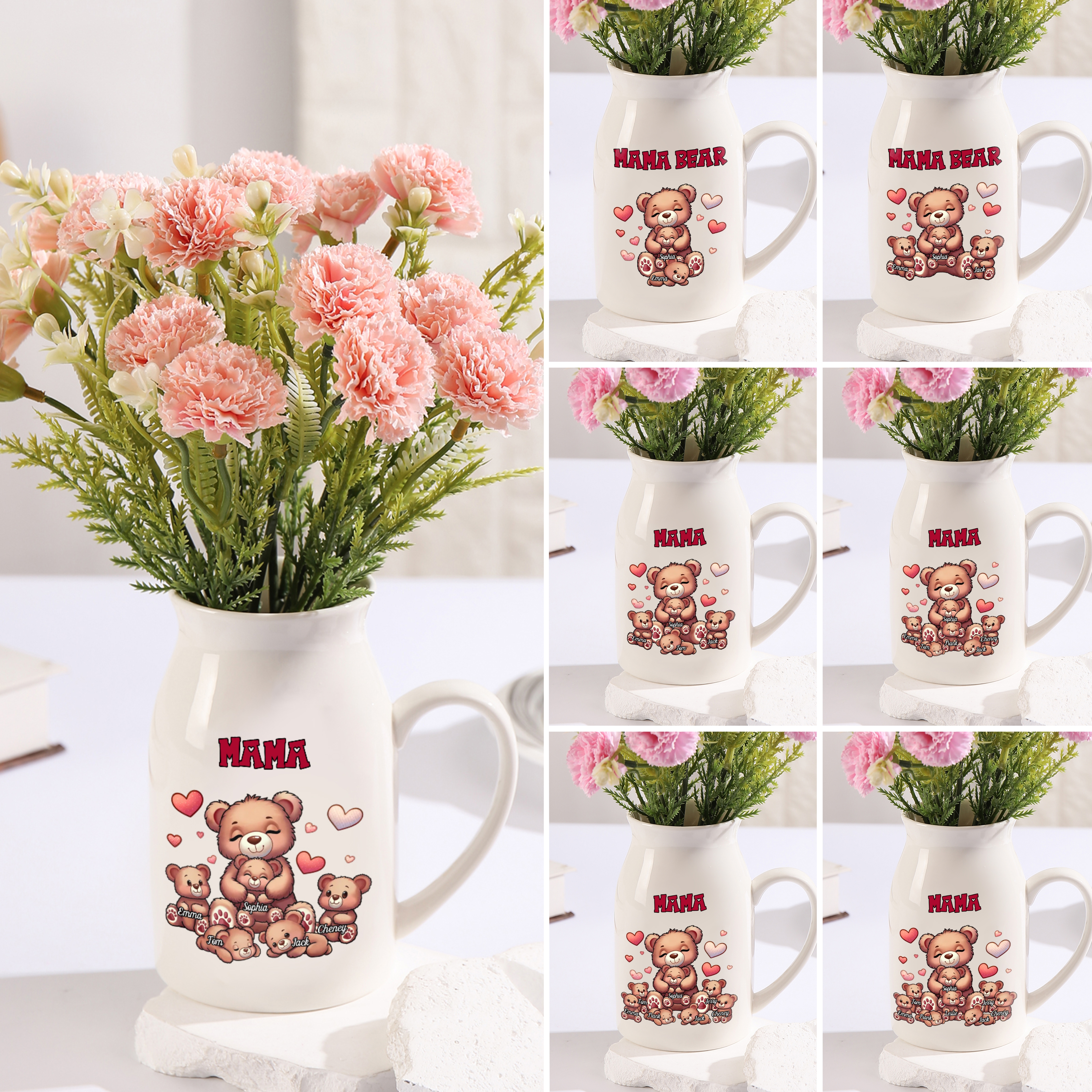 Personalized Ceramic Flower Vase Custom 2–8 Names & 1 Text Bear Family Vase Gift for Mother/Grandma