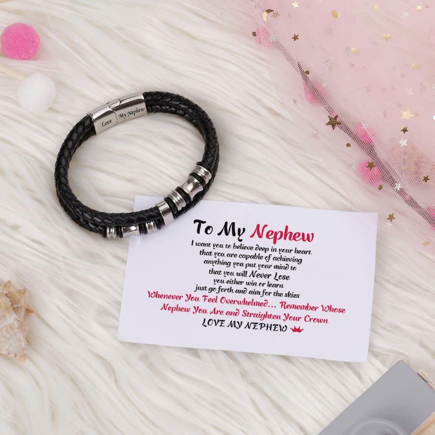 To My Nephew Braided Leather Bracelet "Believe Deep in Your Heart"